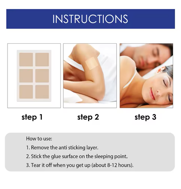 🌙 Sömnplåster är naturliga plåster som appliceras på huden och hjälper kroppen att slappna av, lindrar muskelspänningar och förbättrar sömnkvaliteten.