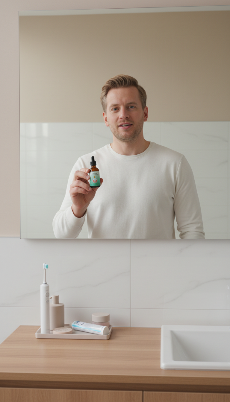 Varje kväll räcker det med två droppar i ett glas vatten för att uppleva skillnaden. På bara några veckor märker du resultat: tandköttet känns starkare, friskare och mer motståndskraftigt. Samtidigt bekämpar produkten bakterier som orsakar dålig lukt, vilket ger dig en fräsch andedräkt varje dag.