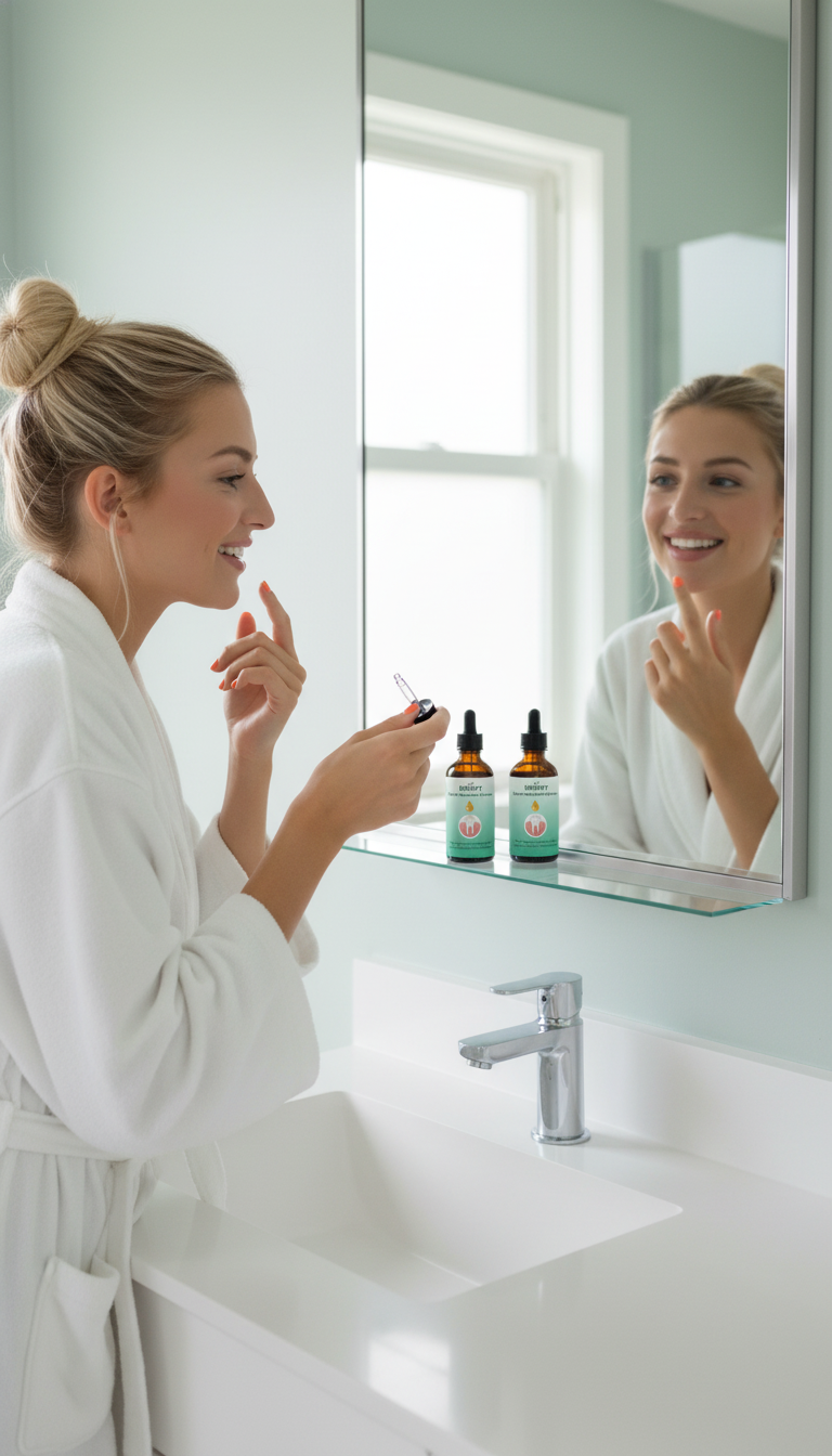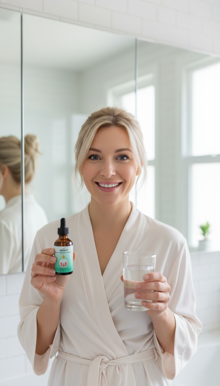 Blanda bara två droppar i ett glas vatten varje kväll och skölj i munnen i cirka en minut. Spotta sedan ut vätskan. Enkel daglig rutin för bästa resultat.
